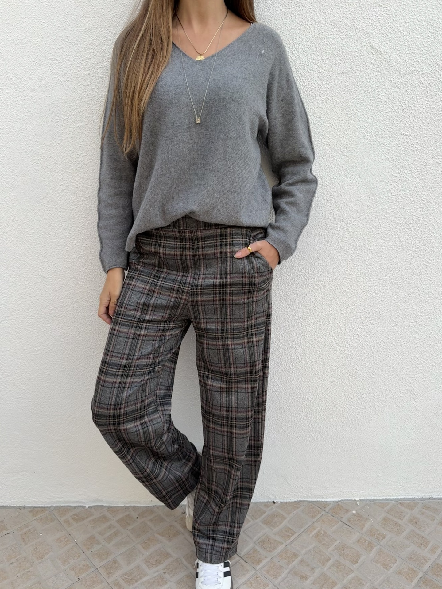 Calças padrão xadrez, super confortáveis e elegantes para o dia a dia.