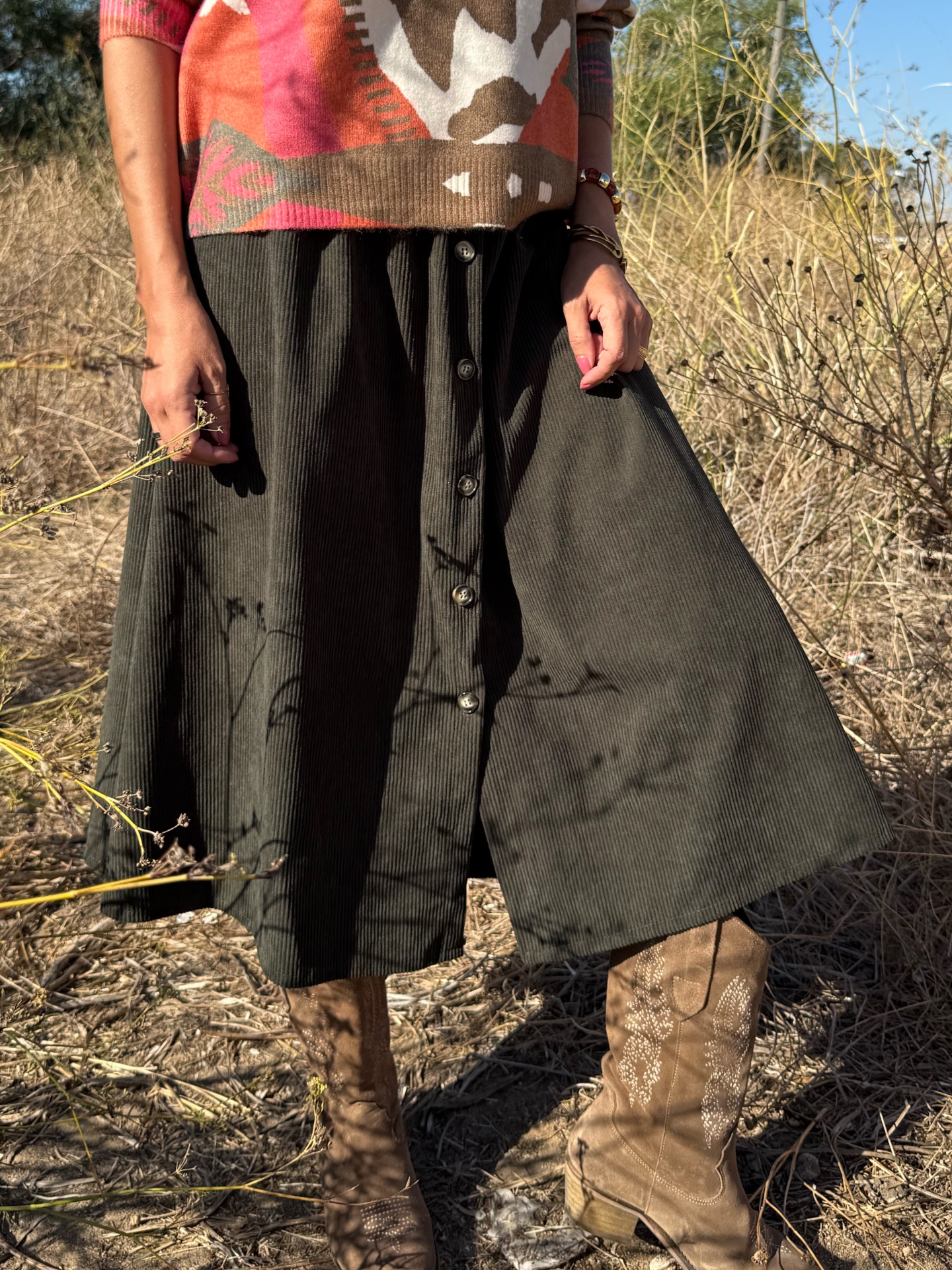 Saia Bombazine Botões | Várias cores